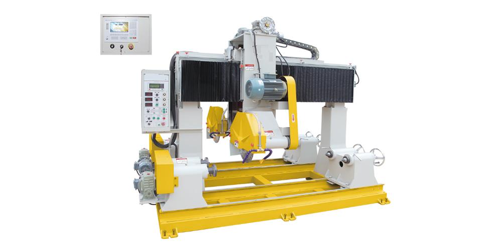 本機(jī)操作簡單,采用框架式整體設(shè)計,微電腦控制,光學(xué)測量控制;可切割任意形狀的圓形欄桿、圓球、柱座、柱帽等旋轉(zhuǎn)體型石材;本機(jī)的設(shè)計改進(jìn)了其他機(jī)器手工加工不均勻、消耗大、精度低的缺點(diǎn),并具有自動控制的優(yōu)點(diǎn),每個尺寸調(diào)整后,型材從1個同時增加到8個,節(jié)省人力,提高生產(chǎn)效率。